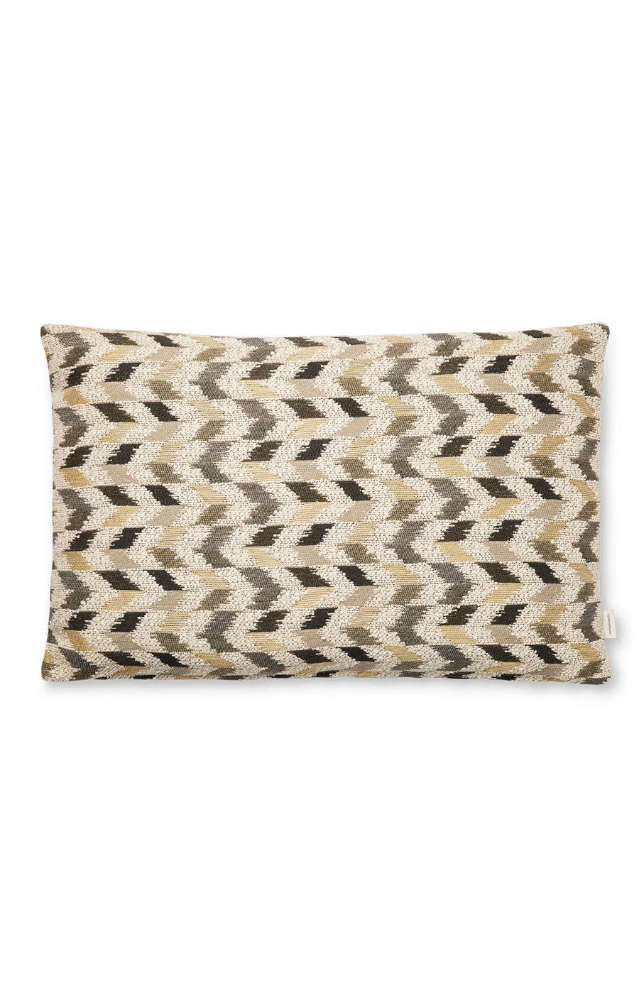 Det abstrakte zigzagmønster kombineret med blød bouclé og et diskret skær gør puden både iøjnefaldende og hyggelig. Bianca er vævet i høj kvalitet, hvilket sikrer både lang holdbarhed og slidstyrke.