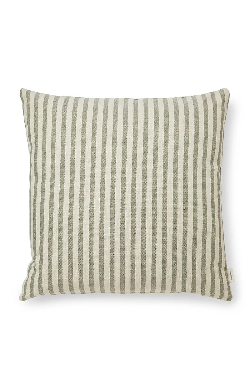 Det smukke, stribede mønster i den bløde bomuld- og hørblanding skaber et naturligt og afslappet udtryk, der passer perfekt ind i både moderne og klassiske indretninger. Puden tilføjer varme og tekstur til sofaen, lænestolen eller sengen og fungerer som en enkel, men stilfuld detalje i hjemmet.