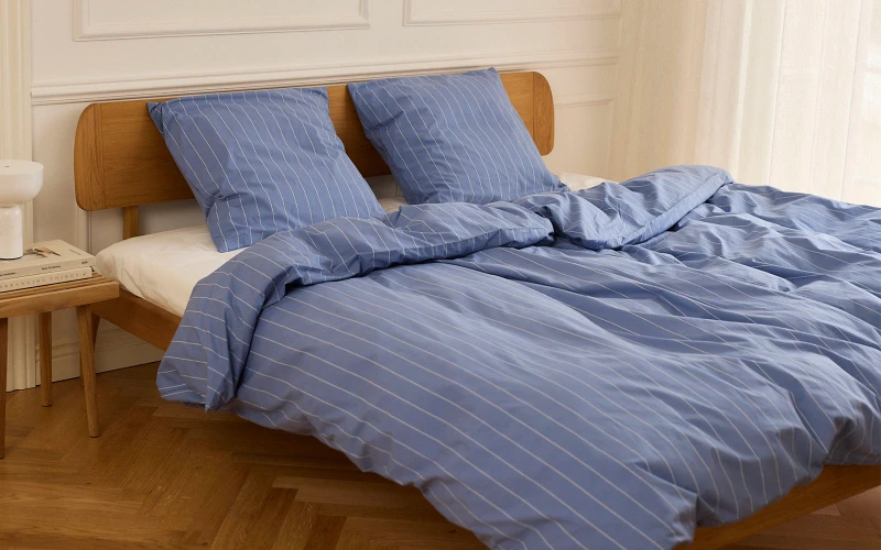Sættet er fremstillet i 100% økologisk bomuld percale, som føles let, køligt og blødt mod huden og sikrer en behagelig og komfortabel nattesøvn. Det stilrene design med diskrete hvide eller blå striber understreger det enkle, nordiske udtryk og passer smukt ind i de fleste soveværelser.