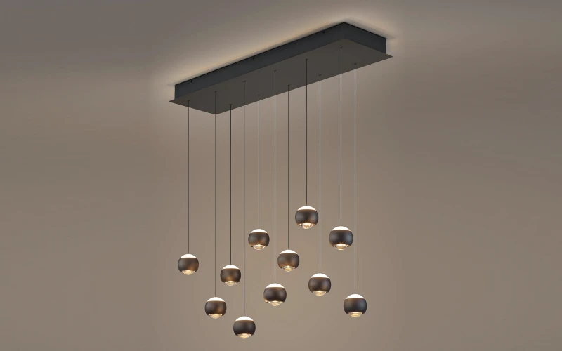 Pendlen består af flere smukke, kugleformede lamper, arrangeret i en harmonisk komposition. De spreder et blødt og behageligt lys, som både skaber stemning og fungerer praktisk – ideelt til både hverdag og middagsselskaber. Den smarte "Lift me"-funktion gør det nemt at hæve eller sænke de enkelte lamper, så lyset altid rammer perfekt over bordet.