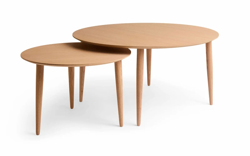 Circle sofabordsættet kombinerer tidløst design med funktionalitet i et enkelt og elegant udtryk. De to runde borde i fineret egetræ har et let og harmonisk formsprog, hvor de slanke, drejede ben fremhæver det nordiske udtryk.