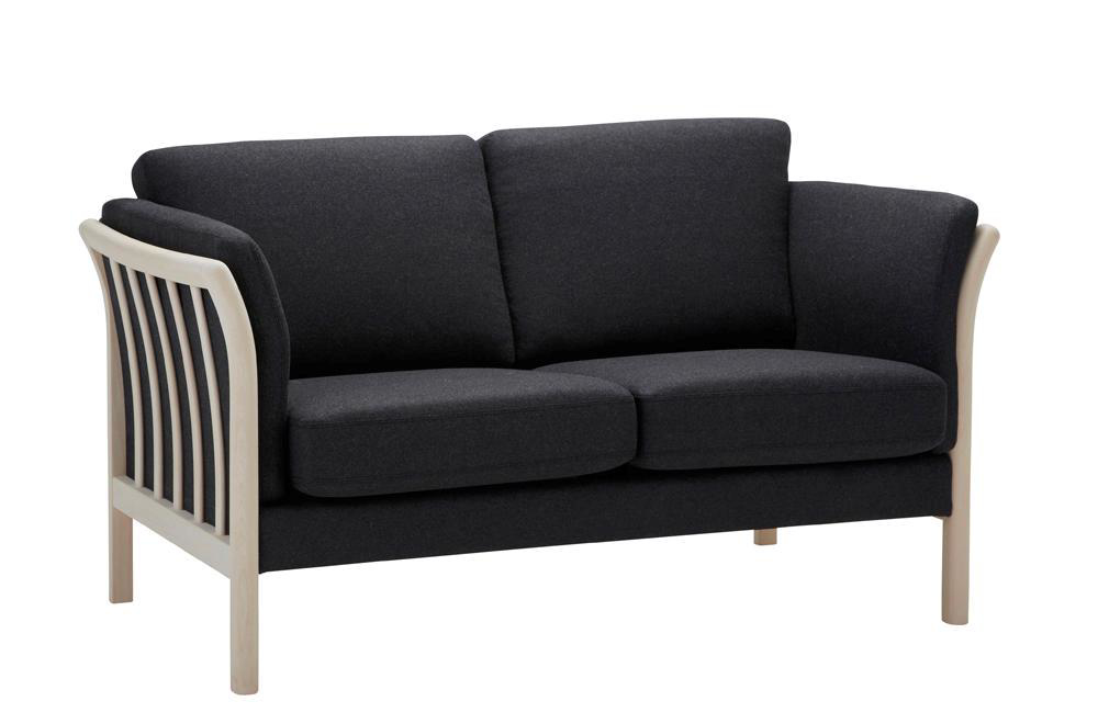 Colombia CL 100 2 personers sofa i gråt uldstof, dessin 223. Sofaen er med massive sæbebehandlede bøgeben, sædehynder af koldskum og ryghynder af polydun.