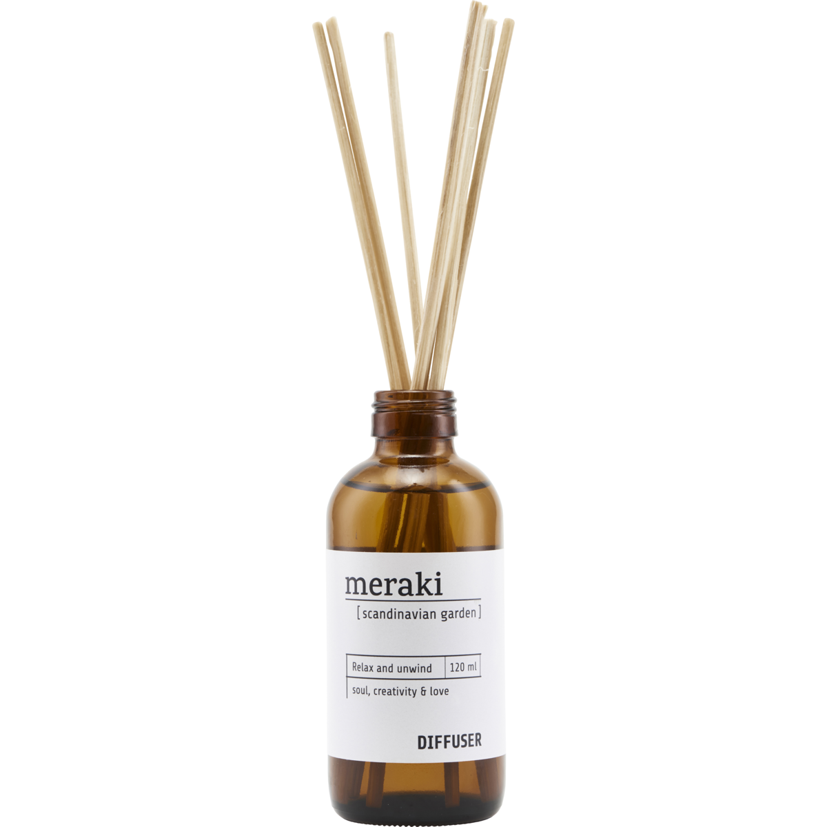 Skab en skøn og indbydende atmosfære i dit hjem med Merakis duftfrisker. Med 7 duftpinde spreder den en mild og behagelig duft af Scandinavian Garden, som passer perfekt til stuen, soveværelset eller entreen. Ønsker du spastemning på badeværelset, er den også ideel. Den er lige så velegnet til at skabe en hyggelig og velduftende stemning i en butik.