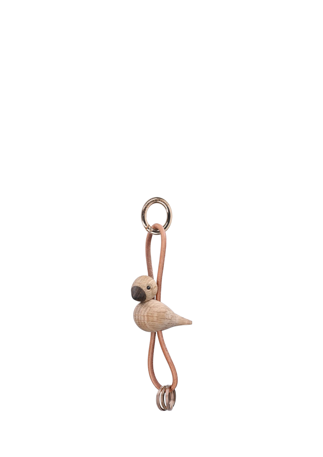 Tag ikonisk dansk design med dig i hverdagen. Denne nøglering fra Kay Bojesen gør det nemt at have de elskede klassikere lige ved hånden – på tasken, i bæltet eller sammen med bilnøglerne. Nøgleringen prydes af sangfuglen i miniature, udført i FSC®-certificeret egetræ, og fuldendes af en naturfarvet lædersnor i ægte læder. Snoren kan justeres, så udtrykket tilpasses din personlige stil.