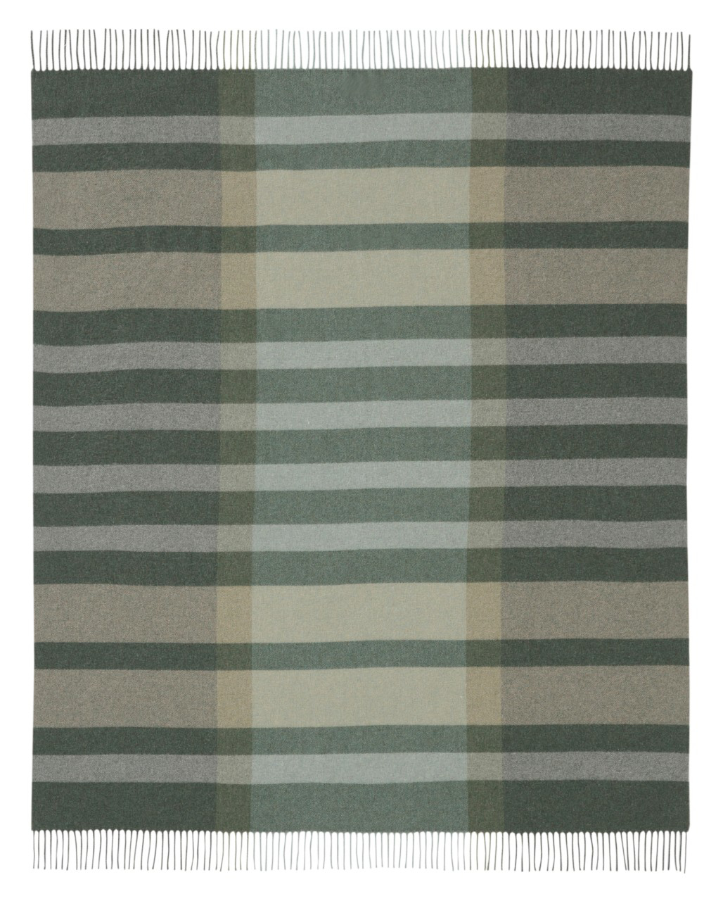 Den fineste uld og luksuriøst kashmir gør dette lette tæppe til et komfortabelt og eksklusivt produkt for de højeste krav. Bredde striber i dyb grøn kombineres med lyse gule felter og skaber et charmerende mønster med et moderne udtryk.
