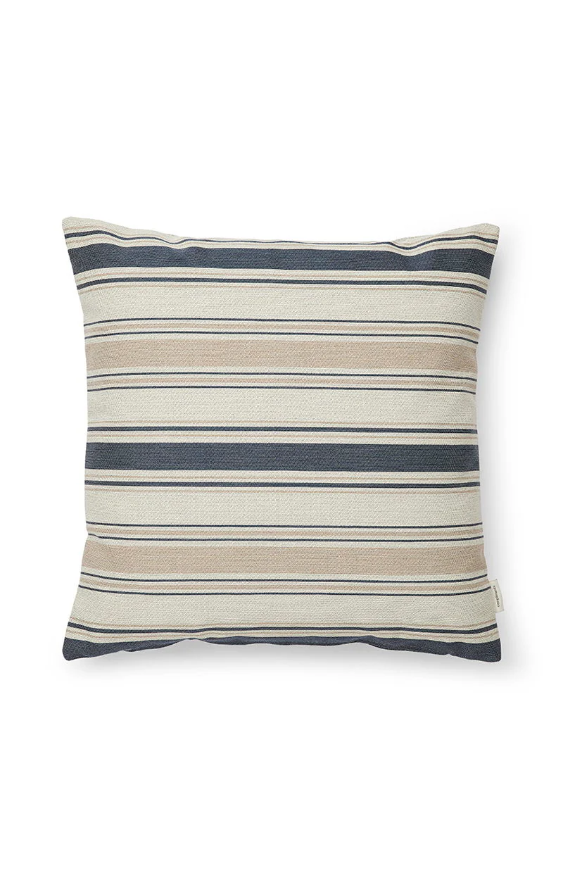 Outdoor Stripe er en stilfuld udendørspude med elegante striber i blå, beige og sand, der bringer et moderne og harmonisk udtryk til din terrasse, altan eller have.