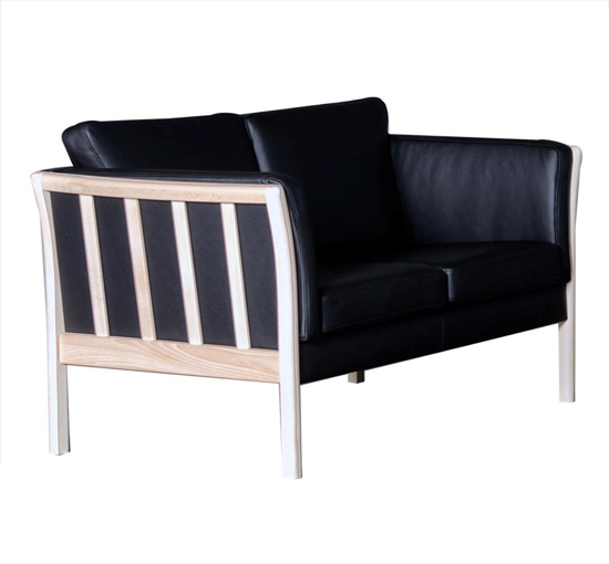 Rosenholm 2 personers sofa med sort okselæder/bonded. Sofaen er desuden med massiv lakeret bøgestel.