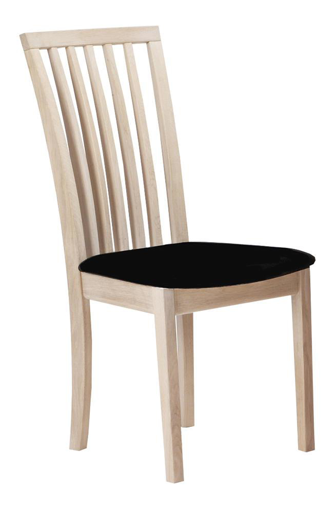 Skovby spisebordsstol med polstret sæde monteret med sort læder i dessin CC. Tremmeryg i massiv hvidolieret eg.