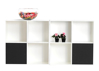 Reol fra Square i hvidmalet MDF. Reolen har 2 stoflåger, således man kan bruge fjernbetjening igennem. Dette gør det til en fin måde at gemme afspillere eller højtalere bagved.
