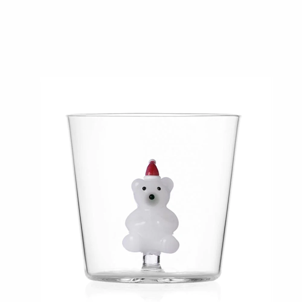 Flot glaspustet tumbler glas med en dekorativ lille isbjørn i bunden af glasset.