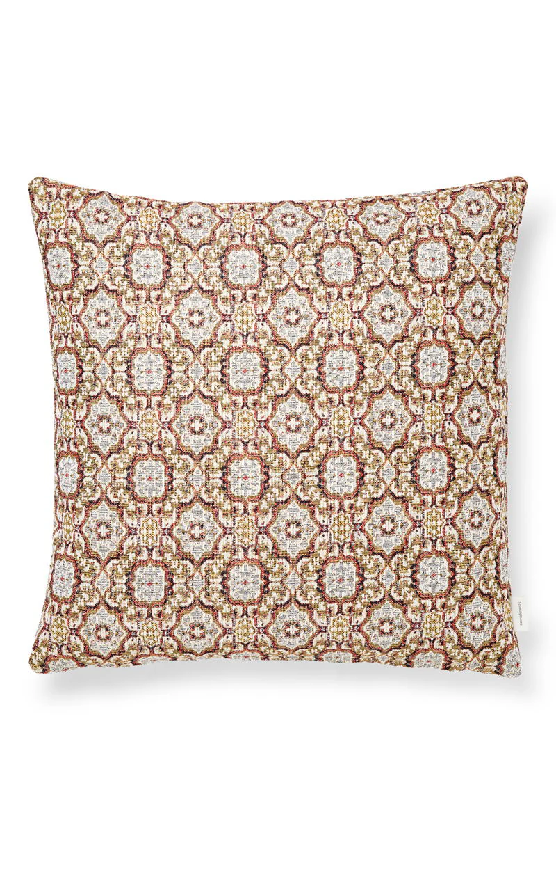 Med sit fine, orientalsk inspirerede mønster i nuancer af rust, okker og sart blå tilføjer puden en varm og indbydende stemning til hjemmet. Den jacquardvævede kvalitet giver et eksklusivt og holdbart udtryk.